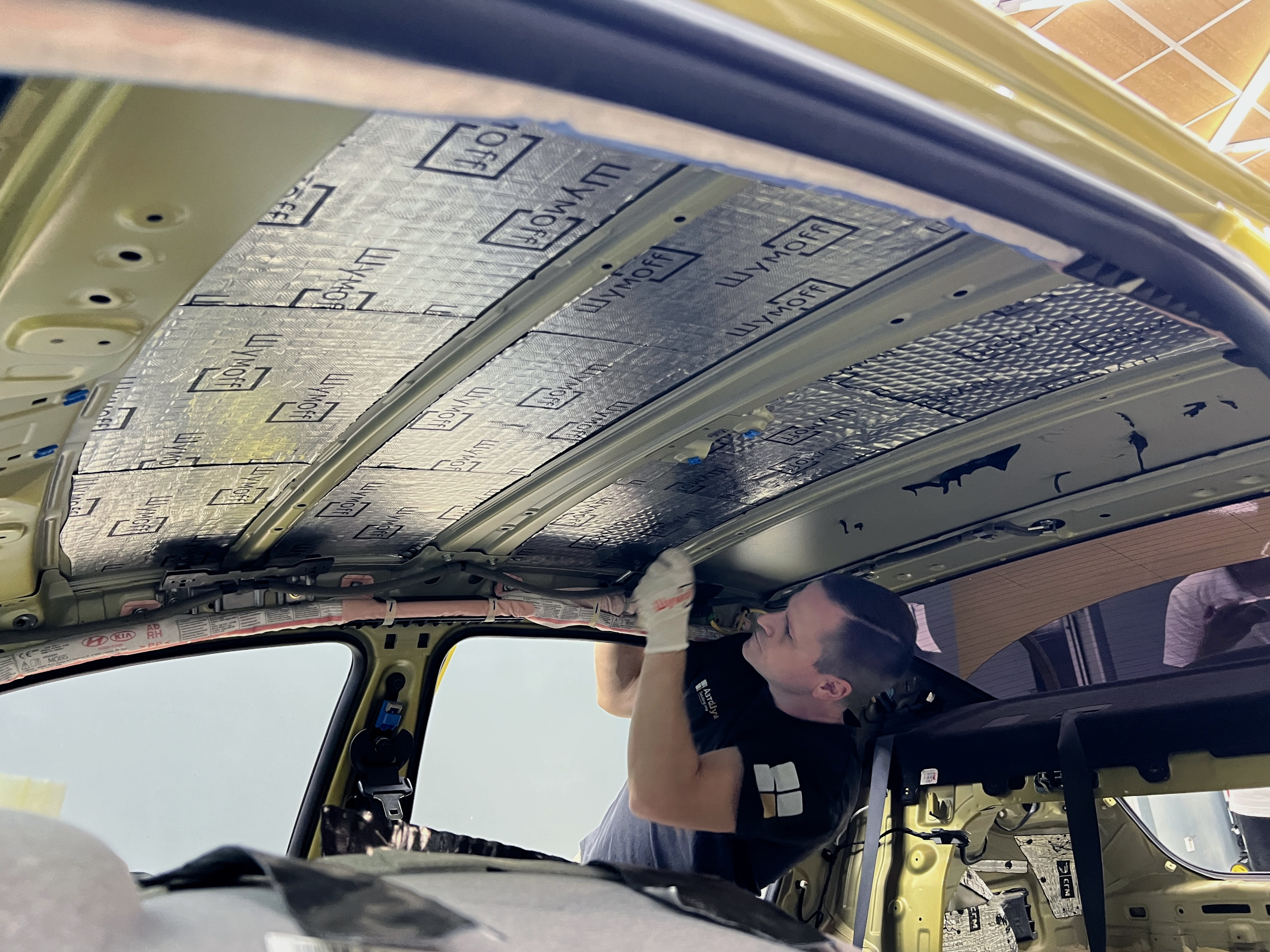 Оклеиваем всю поверхность крыши Элантры между ребер жесткости.