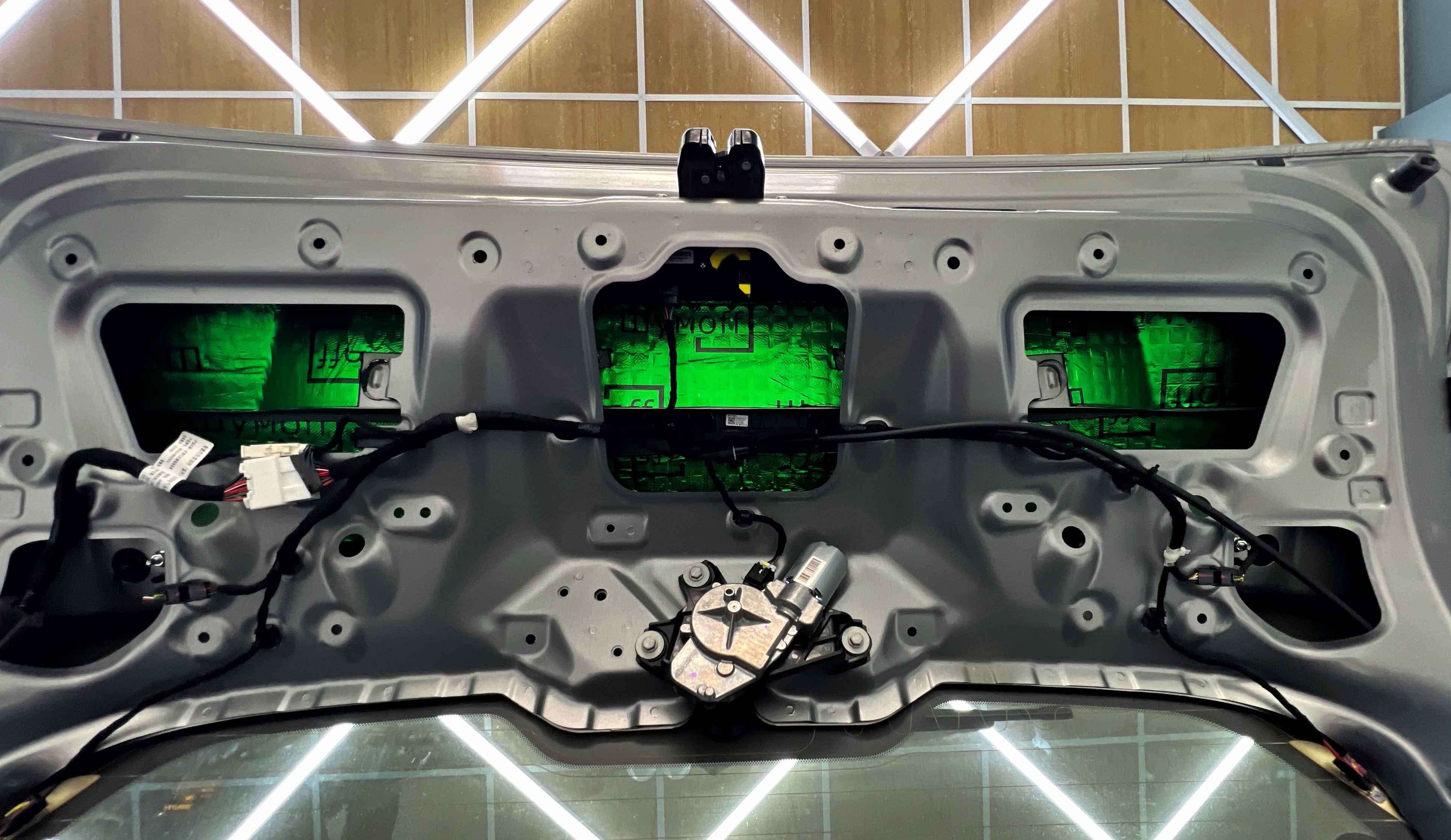 Виброизоляция крышки багажника Хавэйл Джолион Крышку багажника оклеиваем виброизоляцией Шумофф М2, это позволит свести увеличение ее веса к минимуму, дабы не возникло проблем с открыванием багажника.